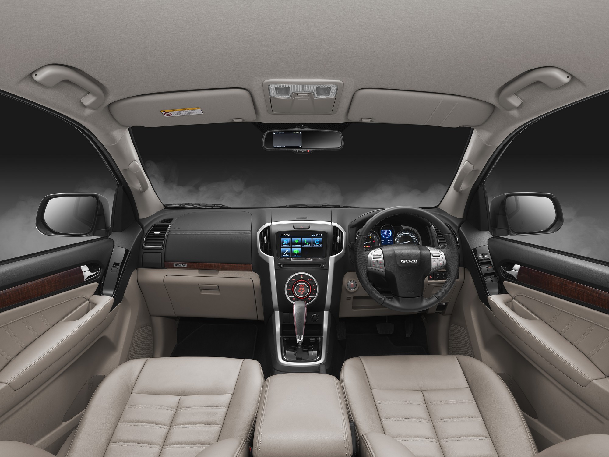 บรรยากาศห้องโดยสารใหม่ สีทูโทน Sandstone Beige ตัดด้วยสีดำเข้ม อบอุ่น กว้างขวาง เบาะนั่งกึ่งหนังแท้ดีไซน์ใหม่ Sport Cut โอบกระชับรับกับสรีระ นุ่มนวล นั่งสบาย พร้อมผิวสัมผัสใหม่แบบ Soft Touch เพิ่มความนุ่มนวลให้เหนือระดับ ในบริเวณคอนโซลหน้า แผงข้างประตู และที่พักแขน หรูหราด้วยลายไม้ Fine Walnut ที่แผงข้างประตู หัวเกียร์ และคอนโซลหน้า ชุดตกแต่งสีดำ Piano Black คมเข้มมีสไตล์ บริเวณคอนโซลกลาง และแผงควบคุมกระจกไฟฟ้า ระบบความบันเทิง iConnect พร้อม Built-in Navigator หน้าจอสัมผัสขนาด 8 นิ้ว พร้อม Air Mirroring รองรับการเชื่อมต่อแบบไร้สายกับ Smartphone พร้อมจุดเชื่อมต่อ USB รองรับทั้ง Smartphone เครื่องเล่น MP3 และ Flash Drive