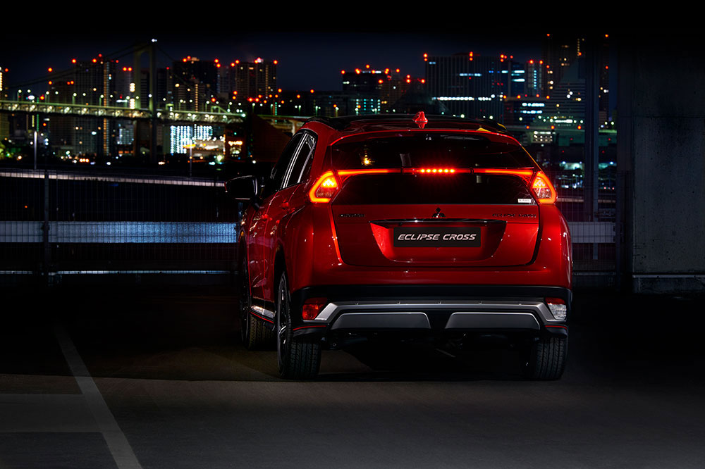 แต่ทางด้านหลัง ทาง Mitsubishi ให้เส้นสายที่เน้นเด่นในความสปอร์ต ทาง Mitsubishi จึงออกแบบไฟท้ายของ Mitsubishi Eclipse Cross ให้มีความยาว ชุดไฟใช้แบบ LED ทั้งหมด สีแดง ถูกคัดสรรเพื่อบอกตัวตนของ Mitsubishi