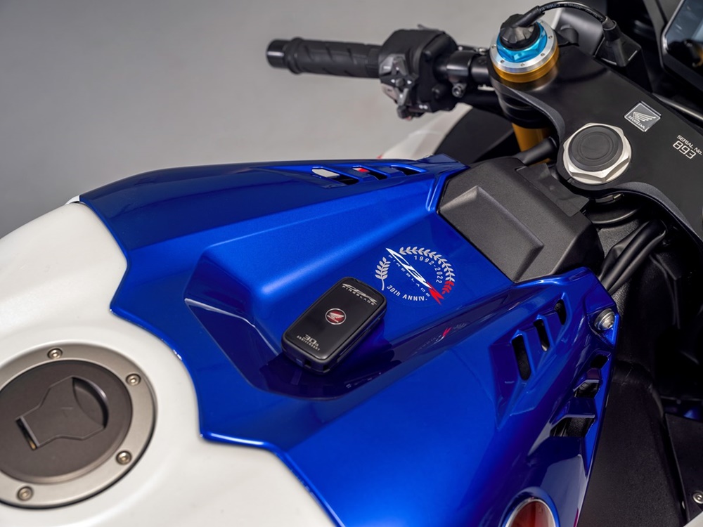 - THE PERSONAL TOUCH กุญแจสตาร์ทเครื่องยนต์อัจฉริยะ พร้อมโลโก้พิเศษ CBR1000RR-R FIREBLADE ดีไซน์ฉลองครบรอบ 30 ปี