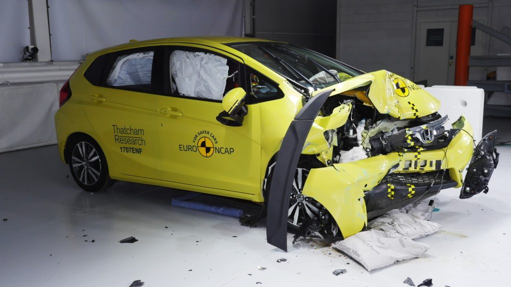 โดยหากกเปรียบเทียบจากภาพระหว่างการชน จะพบว่า ห้องโดยสารของ   Honda  Jazz   สามารถคงรูป และไม่เสียหายจากการชน ผิดกับรถยนต์   Rover  100 ที่มีความสียหายอย่างชัดเจน และอาจจะทำให้เกิดการบาดเจ๊บหรือเสียชีวิตได้