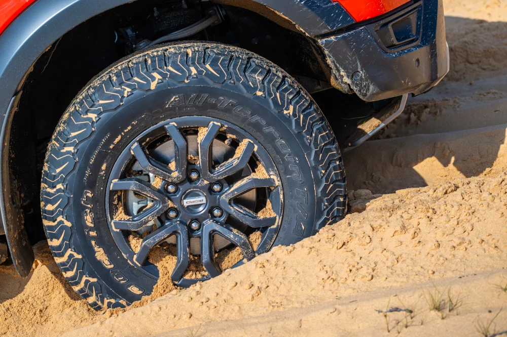 โดยอาวุธดังกล่าว ก็ไม่ได้มีแค่เรื่องของ ชุดยาง BFGoodrich All-Terrain T/A KO2 ซึ่งอาจจะดูเหมือนเป็นยางลุยที่สามารถหาได้ทั่วไปตามร้านยางเฉพาะทาง แต่จริงๆแล้วมีการปรับสเป็คสูตรยางให้เหมาะกับ Ranger Raptor มากขึ้น, ระบบช่วงล่างพร้อมโช้กอัพ Fox Live Valve, และ ขุมกำลังเครื่องยนต์เบนซิน V6 3.0 Turbo ที่พกแรงม้ามากว่า 397 PS กับแรงบิดสูงสุดอีก 583 นิวตันเมตร ส่งกำลังผ่านชุดเกียร์อัตโนมัติ 10 สปีด และระบบกระจายแรงบิดไปยังชุดล้อทั้ง 4 ด้วยไฟฟ้า พร้อมระบบดิฟท์ล็อคไฟฟ้าทั้ง 4 ล้อ