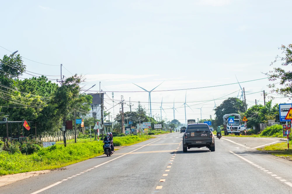 เมื่อหลุดจากเขตเมือง เข้าสู่ทางด่วน ที่ไม่ด่วนเท่าไหร่นักของประเทศเวียดนาม เนื่องจากกฏหมายกำหนดให้ใช้ความเร็วได้ไม่เกิน 80 กิโลเมตร/ชั่วโมง เท่านั้น สิ่งที่น่าสนใจก็คือ เกินครึ่งของพื้นที่บริเวณรอบๆทางด่วนระหว่างจังหวัด แทบไม่มีที่พักอาศัยใดๆ และเป็นที่ตั้งของฟาร์มกังหันลมสำหรับสร้างพลังงานไฟฟ้าจากพลังงานธรรมดาหลายหมื่นไร่เกือบทั้งหมด