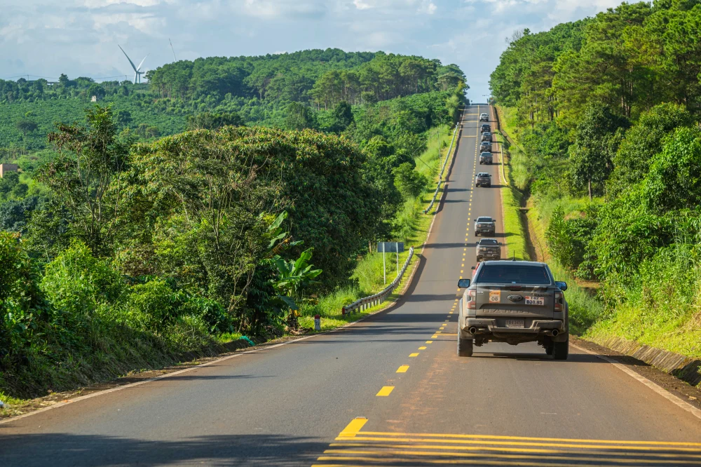 โดยในระหว่างทาง แม้ช่วงแรกเส้นทางออกจากเมืองดาลัดจะดูสวยงาม แต่จากนั้นไม่นานนัก เมื่อหลุดจาเส้นทางหลัก ทาง Ford ก็ได้จัดให้เราต้องวิ่งตัดภูเขาสูงชัน แถมถนนหนทางยังมีแต่รอยแตกผุพังเนื่องจากขาดการดูแลรักษามาเป็นเวลานาน แม้จะเป็นเส้นทางที่ชาวเมืองใช้เดินทางไปเก็บเมล็ดกาแฟในสวน ซึ่งเป็นผลิตภัณฑ์ชื่อดังอย่างหนึ่งของประเทศเวียดนามที่นักดื่มกาแฟหลายคน แม้แต่ชาวไทยยังให้การยอมรับ