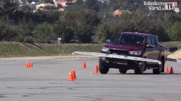 ภาพแสดงการเอนและโคลงตัวของรถกระบะ ในการทดสอบพื้นที่ปิด เมื่อหักหลับด้วยความเร็ว 60 ก.ม./ช.ม.