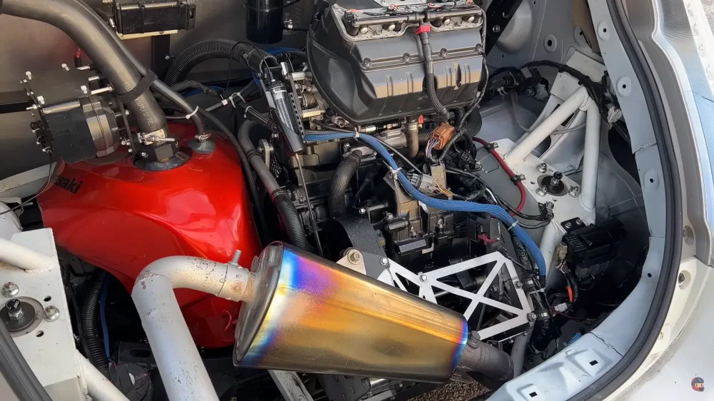 แต่แทนที่ Young จะตัดสินใจเปลี่ยนแบตเตอรี่ของรถใหม่ หรือไม่ก็ขายรถทิ้งไปซื้อคันใหม่ เจ้าตัวกลับปิ้งไอเดียบรรเจิด ด้วยการนึกสนุก นำเอาเครื่องยนต์ 4 สูบเรียง 1,000cc ของรถซุปเปอร์ไบค์ Kawasaki ZX-10R รุ่นปี 2008 มาเป็นขุมกำลังใหม่ให้กับเจ้ารถคันนี้แทน โดยที่ขุมกำลังเดิม ก็ยังคงอยู่กับรถเช่นเดิม