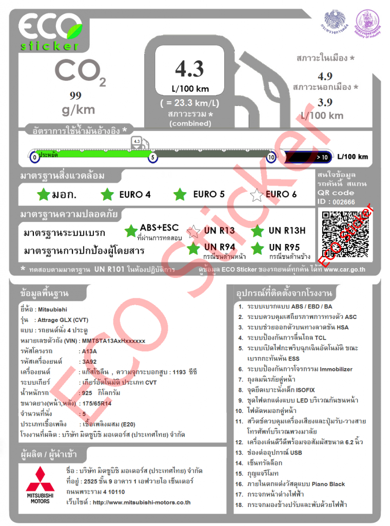 ลำดับที่ 2 Mitsubishi Attrage 99 กรัม/กิโลเมตร