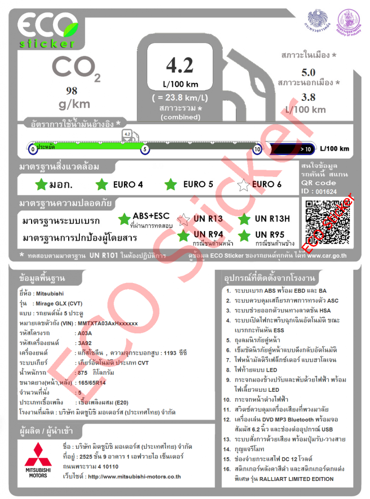 โอ้โหแชมป์อีโคคาร์รักษ์โลกปล่อยมลพิษน้อยกว่าที่สองแค่กรัมเดียว!! กรัมเดียวก็ถือว่าน้อยกว่านะตามหลักวิทยาศตร์หรือจะเอาอะไรมาอ้างอิงก็เถอะ ถ้าคุณจำกันได้เราเคยเสนอข่าวที่บอกว่า Mirage ปล่อยก๊าซคาร์บอนไดออกไซด์น้อยกว่า Tesla Model ตั้งแต่เริ่มต้นการผลิต ใช้งาน และไปจนถึงการย่อยสลายเป็นเศษเหล็ก นี่แหละครับคือเหตุผลที่ทำให้เจ้ารถคันนี้ได้ตำแหน่งแชมป์ไป เหนือสิ่งอื่นใดเจ้า Mirage ยังจัดเต็มความหล่อเหลาไม่แพ้คู่แข่งคันอื่น เสริมด้วยห้องโดยสารที่นั่งได้สบาย กับรายการอุปกรณ์ความปลอดภัยที่น่าสนใจ นอกจากนี้มาตรฐานไอเสียยังอยู่ในระดับยูโร 5 อีกต่างหาก ส่วนราคาจำหน่ายในบ้านเรานั้นรุ่นถูกสุดอยู่ที่ 457,000 ส่วนรุ่นแพงสุดมีราคา 596,000 บาท
