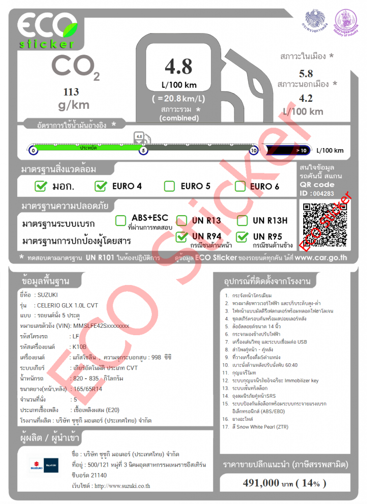 ลำดับที่ 4 Suzuki Celerio CO2 113 กรัม/กิโลเมตร