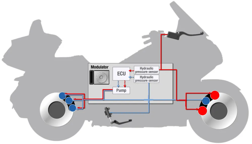 หรือว่าง่ายๆก็คือ ระบบจะเชื่อมต่อการทำงานระหว่างเบรกหน้า และเบรกหลังเข้าด้วยกัน เมื่อผู้ขี่กดเบรกหลังนั่นเอง