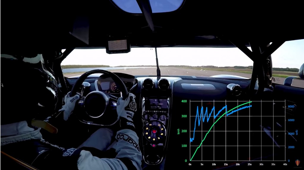 Koenigsegg Agera RS เพิ่งทำลายสถิติการทำความเร็วจากจุดหยุดนิ่งสู่ระดับ 400 กม./ชม. แทนที่ Bugatti Chiron สุดยอดยานยนต์แห่งฝรั่งเศสด้วยเวลา 26.88 วินาที ขณะที่แชมป์เดิมเข้าเส้นช้ากว่าไม่กี่วินาทีอยู่ที่ 32.6 วินาที ผู้ขับทำลาย Agera RS คันทำลายสถิติชื่อ Niklas Lilja ซึ่งเขาได้ขับบนสนามบิน Vandel ประเทศเดนมาร์กเมื่อวันที่ 1 ตุลาคม โดยการทำสถิติครั้งนี้ถูกวัดอย่างแม่นยำด้วยจีพีเอสกับอุปกรณ์เก็บข้อมูล ซึ่ง Agera RS เพิ่มอุปกรณ์พิเศษเพียงชิ้นเดียวไว้บนรถนั่นได้แก่ สปอยเลอร์หลังขนาดใหญ่
