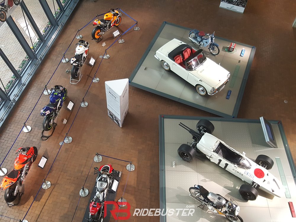 โดยรถมอเตอร์ไซค์ จัดแสดงรถที่น่าสนใจหายรุ่น อาทิ Honda African Twin คันที่นำไปแข่งขันมาแล้ว , Honda NSR 500V เจ้าสองล้อคันนี้เคยผ่านสนามแข่ง Road Racing World Championship มาแล้วในปี 1999 และพานักแข่ง เซเต้ กิเบอร์นัวร์ คว้าอันดับที่ 3 ในการแข่ง Spanish Grand prix