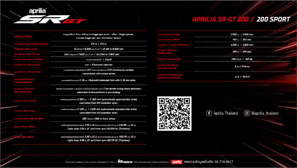 อ่านรีวิว Aprilia SR GT 200 ได้ที่นี่