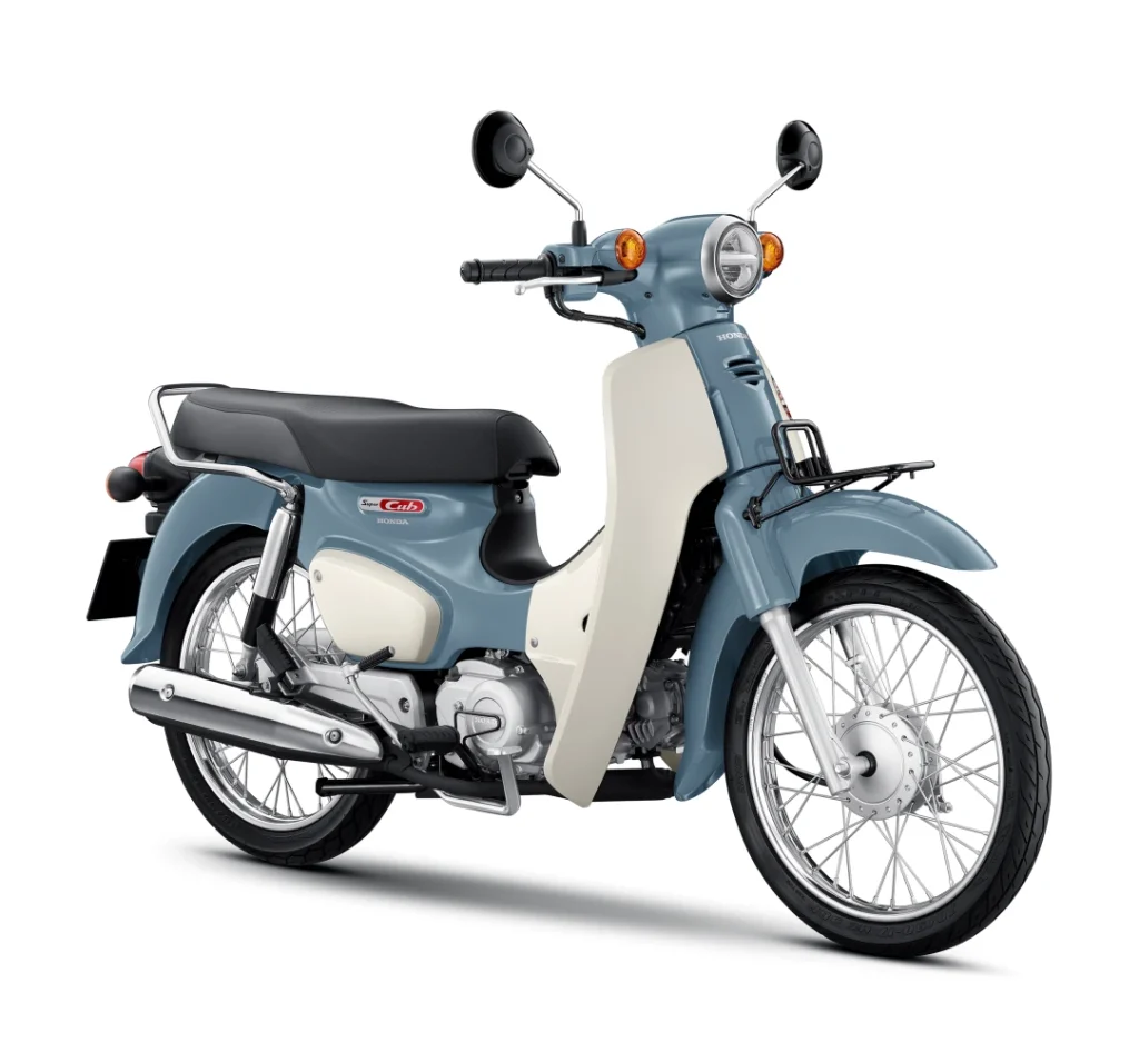 2024 Honda Super Cub รถมอเตอร์ไซค์แม่บ้าน สไตล์คลาสสิค โดดเด่นด้วยภาพลักษณ์วินเทจที่ยังคงความออริจินัล ทั้งจาก ดีไซน์ไฟหน้า LED ทรงกลมและกระจกมองข้างที่ดีไซน์เข้าคู่กันเสริมความเป็นออริจินัลในแบบฉบับของ Super Cub รวมถึงตัวเรือนไมล์สไตล์เรโทรผสานเทคโนโลยีแสดงผล ผ่านจอ Digital LCD และเข็มมาตรวัด