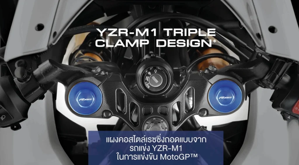 - YZR-M TRIPLE CLAMP DESIGN แผงคอสไตล์เรซซิ่งถอดแบบจากรถแข่ง YZR-M1 ในการแข่งขัน MotoGP