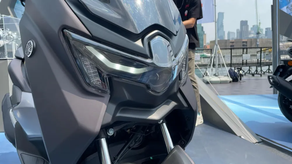 2025 Yamaha Nmax คราวนี้ได้รับการปรับปรุงใหม่แทบทุกด้าน โดยเฉพาะเรื่องของงานออกแบบตัวรถทั้งคันตั้งแต่ ชุดหน้า ที่มาพร้อมกับไฟหน้าแบบใหม่ โดยคราวนี้หันไปใช้โคมไฟ Projector-LED แบบโคมคู่บน-ล่าง ขนาบข้างด้วยดวงไฟ DRL ซ้าย-ขวา ซึ่งปลายสุดเป็นตำแหน่งของแถบไฟเลี้ยวแนวตั้งทั้งสองฝั่งอีกที