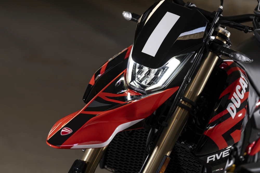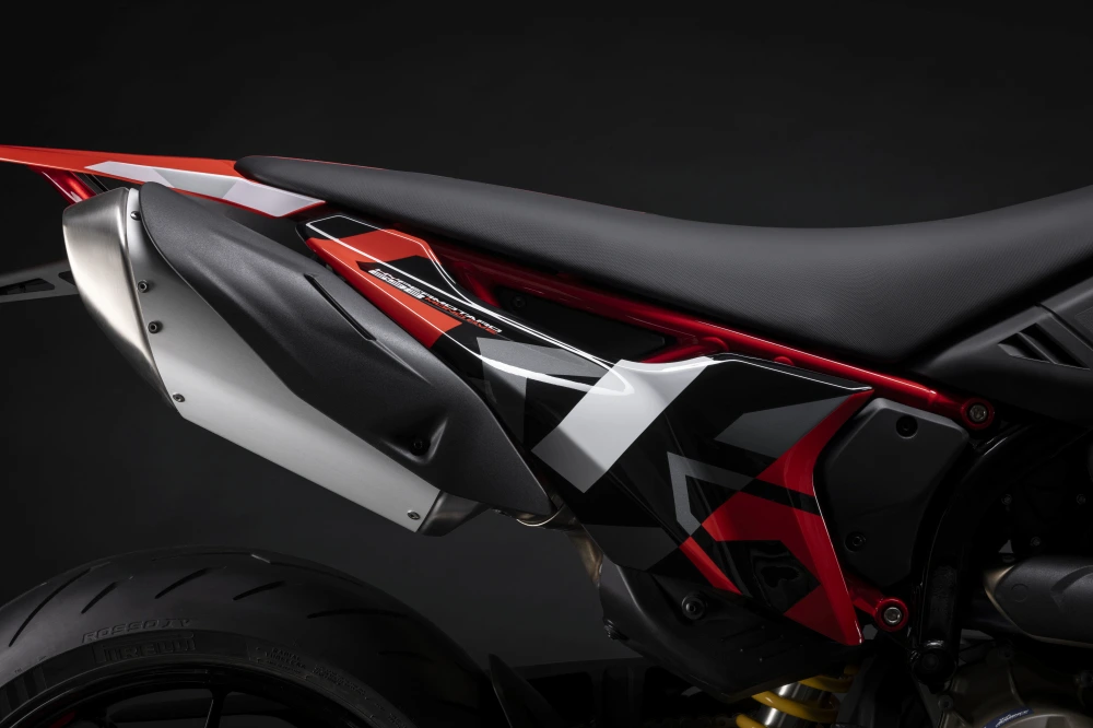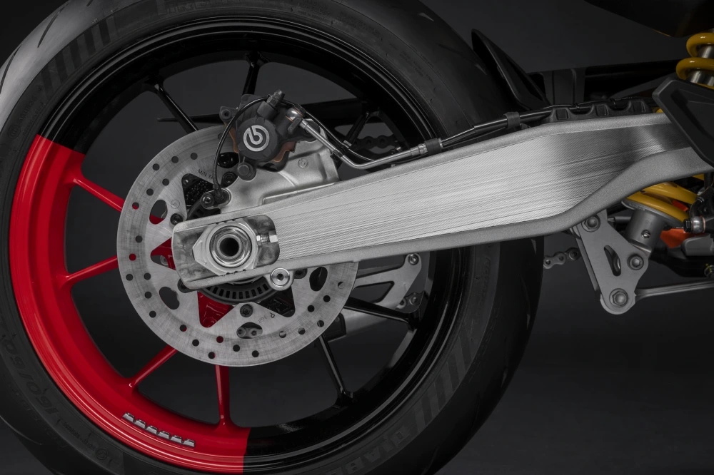 และแม้ขุมกำลังจะเปลี่ยนไปจากเพื่อนร่วมค่าย แม้กระทั่งรุ่นพี่ในตระกูล Hypermotard แต่เจ้ารถซุปเปอร์โมโตคันนี้ก็ยังคงมาพร้อมกับชุดเฟรมแบบโครงเหล็กถัก ที่มีน้ำหนักเบาเพียง 7.2 กิโลกรัม ชุดสวิงอาร์มหลังแขนคู่เอง ก็ทำขึ้นจากวัสดุอลูมิเนียม แม้กระทั่งขาจานเบรกเองก็ยังทำขึ้นจากวัสดุอลูมิเนียมเพื่อไล่เบา ตัวแบตเตอรี่ ยังเป็นแบตลิเทียม-ไอออน น้ำหนักเบาออกโรงงาน