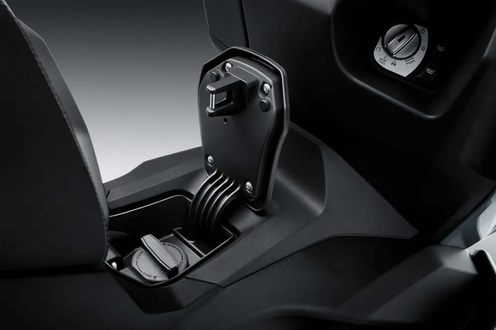 ตามด้วยช่องชาร์จแบบพอร์ตคู่ ทั้ง USB-A และ USB-C ที่อยู่บริเวณช่องเก็บของด้านซ้าย อีกทั้งยังสะดวกและปลอดภัยในการใช้งาน ด้วยกุญแจแบบ Smart Key (มาตรฐาน IP67) ทนต่อน้ำและฝุ่น พร้อมฟังก์ชันกันขโมยในตัว และมีถังน้ำมันด้านหน้าความจุ 8 ลิตร ตอบโจทย์การใช้งานจริงในชีวิตประจำวัน พร้อมเบาะนั่งดีไซน์สปอร์ตให้ความรู้สึกกระชับ และมีความสูงจากพื้นเพียง 770 มิลลิเมตรเท่านั้น รวมถึงยังมาพร้อมกับพักเท้าผู้ซ้อนแบบพับเก็บได้ ช่วยให้การเดินทางร่วมกันในทุกวันสะดวกและลงตัวมากขึ้น