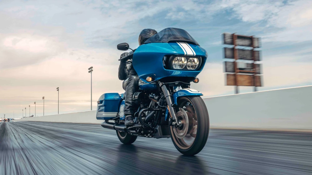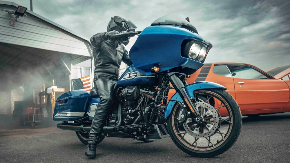 รถมอเตอร์ไซค์รุ่น Road Glide ST โฉบเฉี่ยวและขับเคลื่อนด้วยเครื่องยนต์ Milwaukee-Eight® 117 สร้างความโดดเด่นให้กับตัวรถด้วยองค์ประกอบแบบชายฝั่งตะวันตก และการตกแต่งตัวเครื่องเป็นสีดำและสีบรอนซ์ ดึงดูดเหล่านักขับขี่ที่ต้องการโฉบเฉี่ยวบนท้องถนน ด้วยการขับขี่ระยะทางไกลที่สะดวกสบายและแฟร์ริ่งทรง “หัวฉลาม”