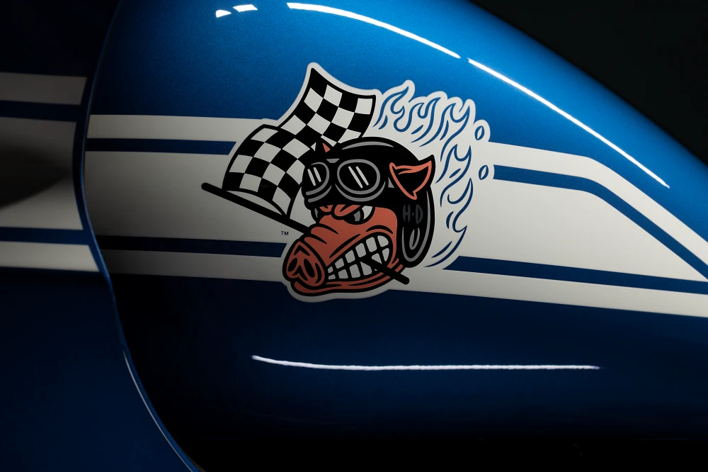 นอกจากนี้ สัญลักษณ์ Fast Johnnie จะปรากฎอยู่ทางด้านซ้ายของถังน้ำมัน พร้อมด้วยด้านบนของตัวรถมอเตอร์ไซค์ที่ผลิตจากทีมโรงงาน Harley-Davidson® Screamin’ Eagle® เพื่อใช้สำหรับการแข่งขันในซีรีส์ MotoAmerica King of the Baggers