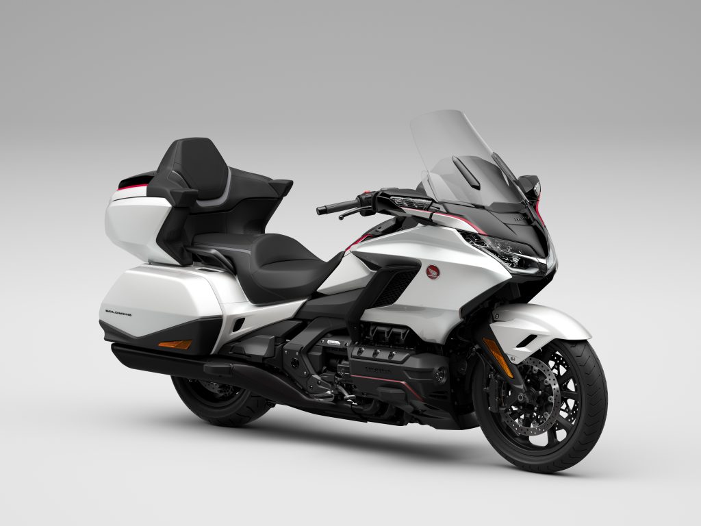 New Honda GOLDWING’ รถทัวริ่งระดับท็อปคลาส มาพร้อมคอนเซปต์ ‘Beyond Your Masterpiece ให้ปลายทาง เหนือทุกจินตนาการ’ โดดเด่นด้วยดีไซน์ตามแบบฉบับของความเรียบหรู เสริมความที่สุดของพรีเมียมด้วยสีสันทูโทนใหม่ ได้แก่ ‘สีขาว-ดำ Pearl Glare White Graphite Black และ ’สีเทา-ดำ Heavy Gray Metallic & Graphite Black’