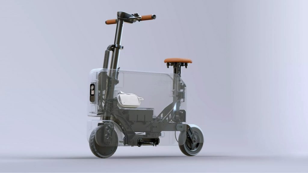 และนอกจากงานดีไซน์ที่เน้นความเรียบง่าย เพราะมันแค่ดูเหมือนกล่องพิซซ่าสีขาวใบหนึ่ง ที่มีการใส่ล้อหน้าพร้อมบังโคลน, ล้อหลังที่สามารถสไลด์เข้าออกได้ ตามลักษณะการใช้งาน (จะเก็บ หรือจะขี่), ติดตั้งไฟ LED ขนาดเล็กไว้ด้านหน้าและด้านหลัง, เบาะนั่งพับเก็บเข้าไปตรงกลางได้ เช่นเดียวกับแฮนด์บาร์, พักเท้าแบบพับเก็บได้ พร้อมขาตั้งข้าง