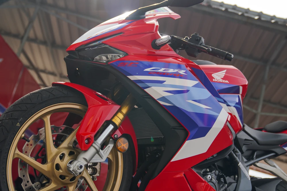 - กาบแฟริ่งข้างที่ดูคล้ายกับรุ่นน้องอย่าง CBR150R และมีการปรับงานดีไซน์ช่องรีดอากาศออกจากห้องเครื่องใหม่หลายจุด โดยเฉพาะบริเวณด้านข้างเสื้อสูบ