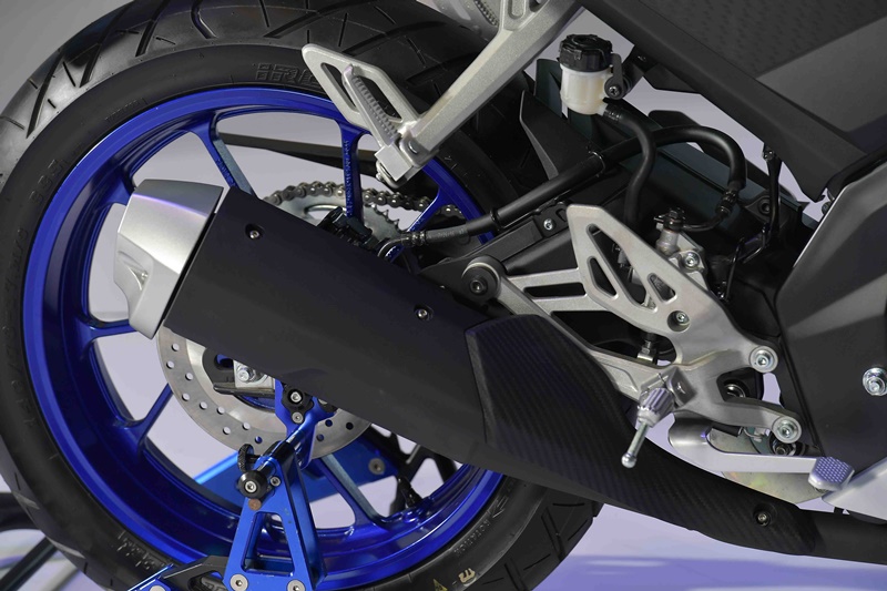 ผสานกับการวิศวกรรม Delta Box ให้ความแข็งแกร่งทนทาน อีกทั้งยังมีประสิทธิภาพในการขับขี่ด้วยสวิงอาร์ม อลูมิเนียม และการออกแบบสมมาตรในการกระจายน้ำหนัก หน้า-หลัง พร้อมโช๊คอัพหน้า Up Side Down