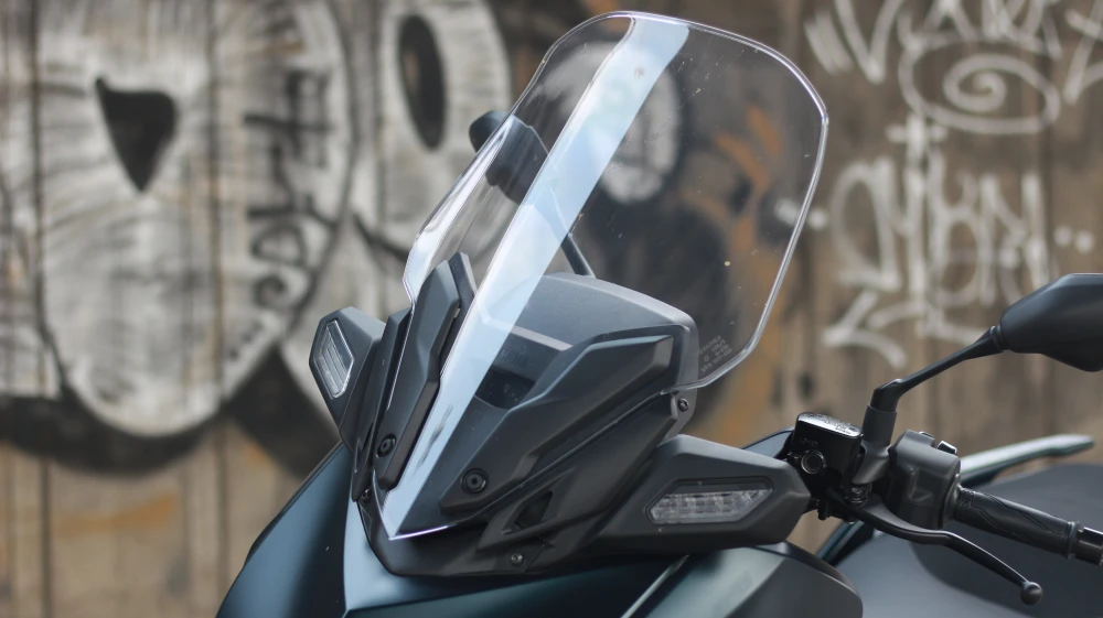 ด้านไฟเลี้ยวหน้า นอกจากปรับเป็นหลอด LED ยังถูกปรับตำแหน่งใหม่ ให้ย้ายไปติดตั้งขนาบกับฐานชิลด์หน้า เพื่อเพิ่มทัศนวิสัยการมองเห็นของผู้สัญจรรอบข้าง โดยที่ตัวชิลด์หน้าจะยังคงสามารถปรับความสูงได้เพียง 2 ระดับ และที่สำคัญคือยังต้องปรับด้วยมือเท่านั้น แต่มันก็ได้ปรับปรุงรูปทรงใหม่ ให้กว้างขึ้น เพื่อการแหวกลมออกจากตัวผู้ขี่ที่ดีกว่าเดิม
