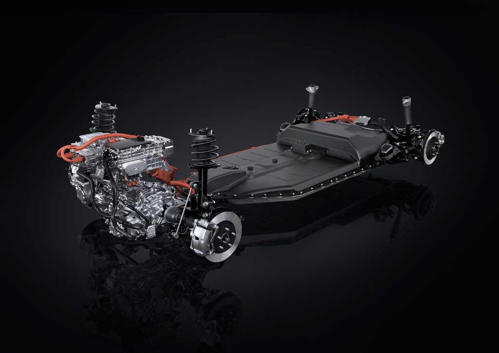 ใต้เรือนร่าง Lexus UX300e พัฒนามาจาก Toyota TNGA-C ถ้าคุณคิดว่ามันคุ้นๆ ก็ไม่แปลก เพราะนี่คือโครงสร้างเดียวกับที่นำมาใช้ในรถยนต์ยอดนิยม อย่าง Toyota Corolla, Toyota Corolla Cross ไปจนถึง Toyota C-HR แต่ก็มีการพัฒนาบางอย่างให้พร้อมสำหรับการเป็นรถยนต์ไฟฟ้า