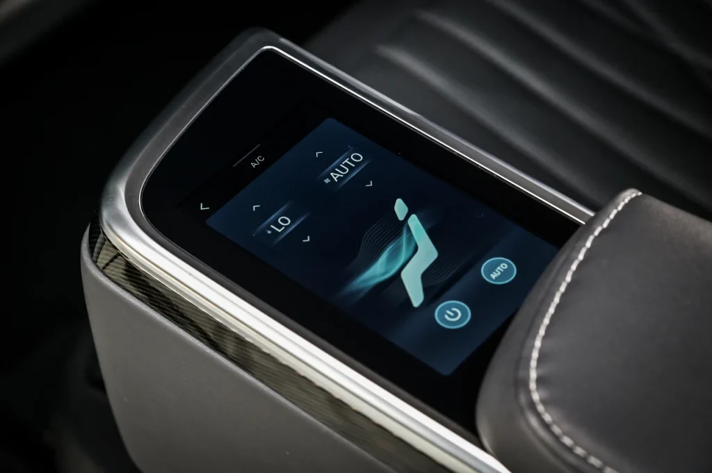 ทางด้านหน้า แนะนำการออกแบบด้วย ความเป็นรถยนต์จากจีน มีชุดจอ 2 ชุด อันหนึ่ง มีขนาด 7 นิ้ว วางไว้ที่ตรงหน้าคนขับ ส่วนอีกชุด เป็นหน้าจอจัดการสิ่งต่างๆ ภายในรถ , รวมถึง การเชื่อมต่อ และระบบความบันเทิง เป็นจอขนาด 12.3 นิ้ว