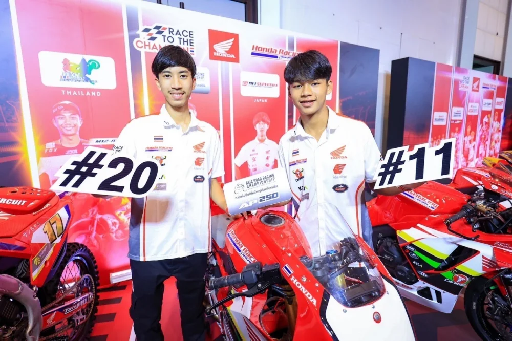 ส่วนในรุ่น AP250 ผลักดันนักบิดดาวรุ่งรุ่นใหม่อย่าง “ข้าวกล้อง” จักรีภัทร พฤฒิสาร หมายเลข 20 และ “มิกซ์” ธนัช ละอองปลิว หมายเลข 11 ผนึกกำลังกับนักบิดสาวแกร่ง “มุกข์” มุกข์ลดา สารพืช เจ้าของหมายเลข 44 ทวงบัลลังก์ศึกทางเรียบ เอเชีย โรด เรซซิ่ง แชมเปี้ยนชิป รุ่น AP250 อีกครั้ง ภายใต้สังกัดทีม ฮอนด้า เรซซิ่ง ไทยแลนด์ โดยใช้รถแข่ง Honda CBR250RR