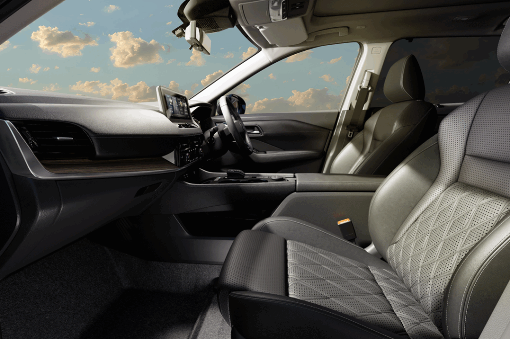 ภายในใหม่ด้วยพวงมาลัยมัลติฟังก์ชัน 3 ก้าน ดีไซน์เดียวกับ Nissan ARIYA รองรับ Android Auto และ Apple CarPlay ไร้สาย ในชุดจอสัมผัส 12.3 นิ้ว และยังมีขนาด 8 นิ้วให้เลือก พร้อมมาตรวัดดิจิตอล Full LCD ขนาดใหญ่ 12.3 นิ้ว พร้อมลำโพงคุณภาพ 9 จุด จาก BOSE