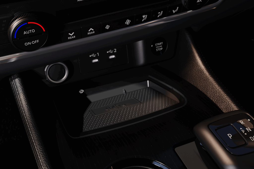 ระบบชาร์จมือถือไร้สาย wireless charging ม่านบังแดดประตูหลังซ้าย-ขวา ช่องเชื่อมต่อ USB type C ทั้งแบบ 2 จุดด้านหน้าและเพิ่มอีก 2 จุดด้านหลัง และช่องเสียบปลั๊ก 100V AC power supply (1500W) สามารถเสียบปลั๊กใช้อุปกรณ์ไฟฟ้าได้