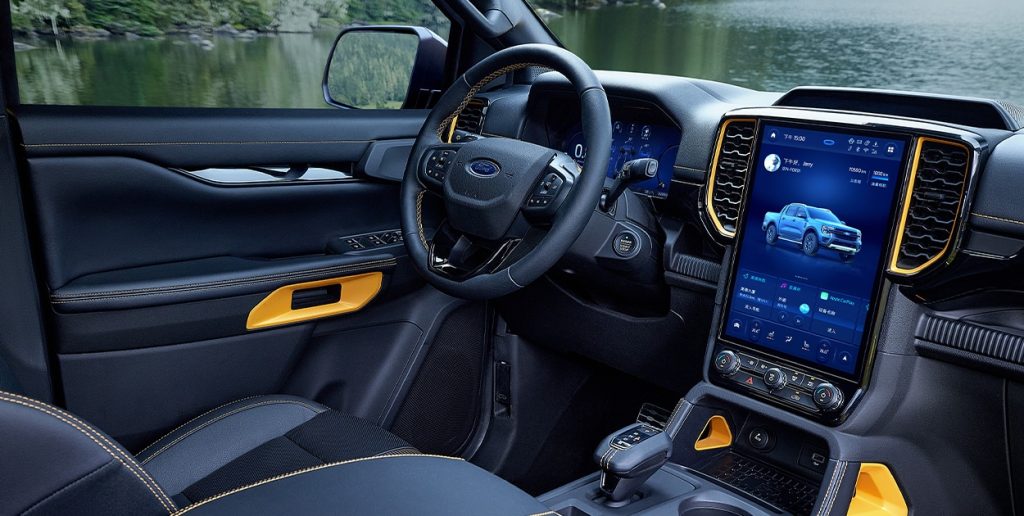 ภายในมาพร้อมแผงคอนโซลหน้าหรูหราตกแต่งด้วยวัสดุที่หรูหราและพื้นที่จัดเก็บสัมภาระมากกว่าเดิมหน้าจอสัมผัสแนวตั้งขนาด 12.1 นิ้ว ที่เชื่อมกับกล้อง 360 องศา ระบบสั่งงานด้วยเสียง SYNC 4 รองรับ Android Auto และ Apple CarPlay แบบไร้สาย พร้อมระบบนำทาง AutoNavi Maps และ Quanmin Karaoke มาตรวัดดิจิทัลใหม่ 12.3 นิ้ว ยกระดับประสบการณ์การขับขี่ด้วยการแสดงผลข้อมูลเกี่ยวกับรถอย่างเต็มรูปแบบตามความต้องการของผู้ใช้งาน สวิตช์ปุ่มขับเคลื่อนสี่ล้อ พร้อมโหมดการขับขี่ Drive Mode ดีไซน์ต่างพร้อมปุ่มกด 4 L เบรกมือไฟฟ้าพร้อม Auto Hold ไม่ต้องยุ่งไปปรับที่จอ