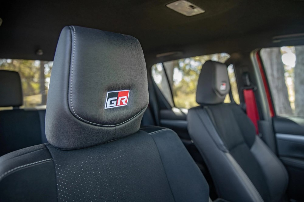 ด้านงานตกแต่งภายใน ดูเหมือนจะไม่ใช่จุดที่ทางค่ายเน้นหนักมากเท่าไหร่นัก เพราะหากเทียบกับตัวรถ HiLux รุ่นปกติแล้ว มันก็จะมีความพิเศษจากเดิม เพียงแค่ในส่วนของอินเตอร์เฟซหน้าจอกลางแบบ GR, พวงมาลัยมีแถบเซนเตอร์สีแดง และก้านด้านล่างแปะโลโก้ GR, หัวเบาะปักลายนูน GR