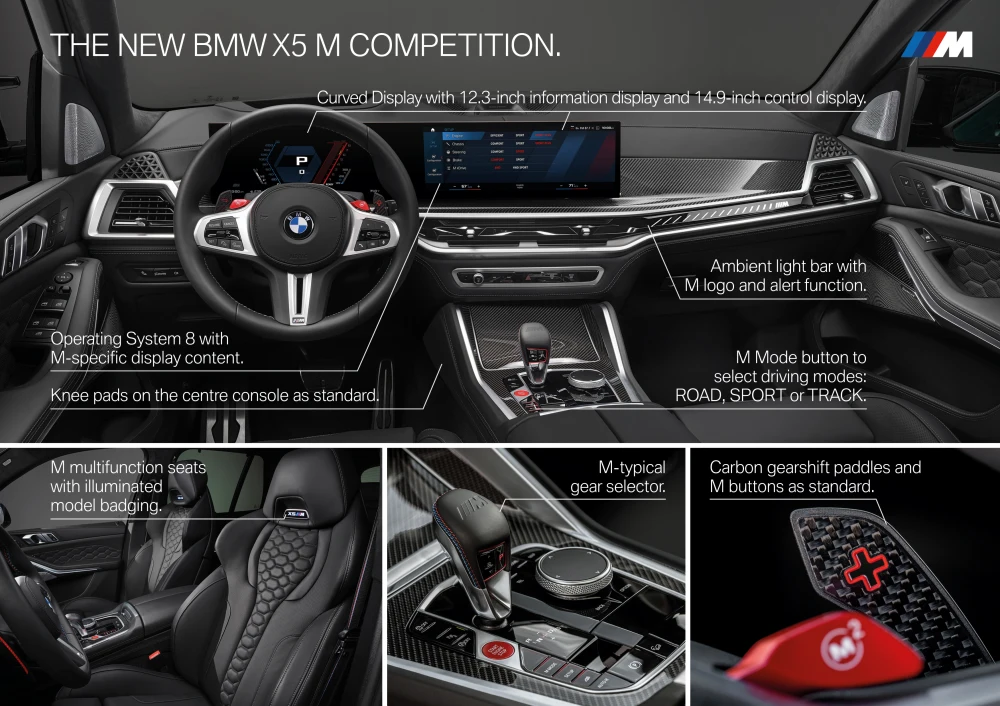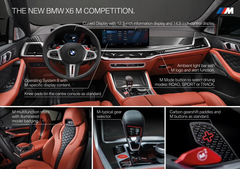 นอกเหนือจากนั้น ก็ยังคงเป็นการตกแต่งชิ้นส่วนต่างๆภายในห้องโดยสาร ในแบบฉบับของรถรหัส “M” ไม่ว่าจะเป็น แถบไฟแวดล้อมแบบใหม่ที่ดุดันขึ้น, ชิ้นส่วนงานคาร์บอนตามจุดต่างๆของคอนโซล ไม่เว้นแม้กระทั่งแป้นแพดเดิลชิฟท์หลังพวงมาลัยหุ้มหนัง