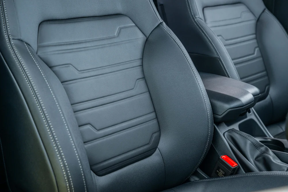 ภายในห้องโดยสาร ยังมีการปรับเปลี่ยนออพชันเบาะผ้า ให้กลายเป็นเบาะหนังครั้งแรกของกระบะขับสองยกสูงตัวเริ่มต้น และแผงคอนโซลด้านหน้าที่ปรับดีไซน์ใหม่ให้เข้ากับภายนอกที่ดูสปอร์ตมากขึ้น พร้อมหน้าจอขนาด 10.1 นิ้ว รองรับการเชื่อมต่อ Apple CarPlay® และ Android Auto™ แบบไร้สาย