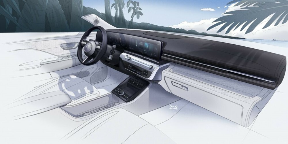 งานตกแต่งภายในของตัวรถเอง ก็พบว่ามันมีหน้าตา และบรรยากาศภายใน ที่ไม่ต่างไปจาก Hyundai Ioniq 5 ที่พึ่งถูกนำมาเผยโฉมในบ้านเราเมื่อไม่นานมานี้เท่าไหร่นัก ทั้งงานออกแบบคอนโซล ที่โดดเด่นด้วยชุดจอแสดงผลระบบอินโฟเทนเมนท์ ขนาด 12.3 นิ้ว ที่ถูกติดตั้งแบบลอยตัว แถมยังเชื่อมต่อกับจอแสดงผลข้อมูลตัวรถขนาดเดียวกัน เป็นกรอบเดียวกัน