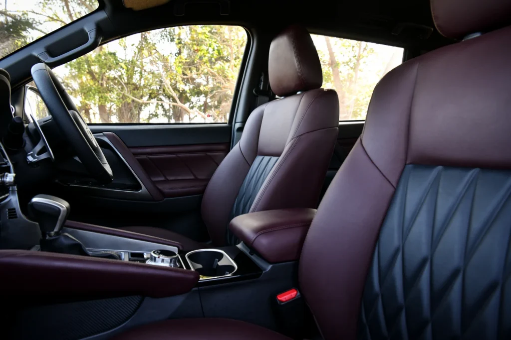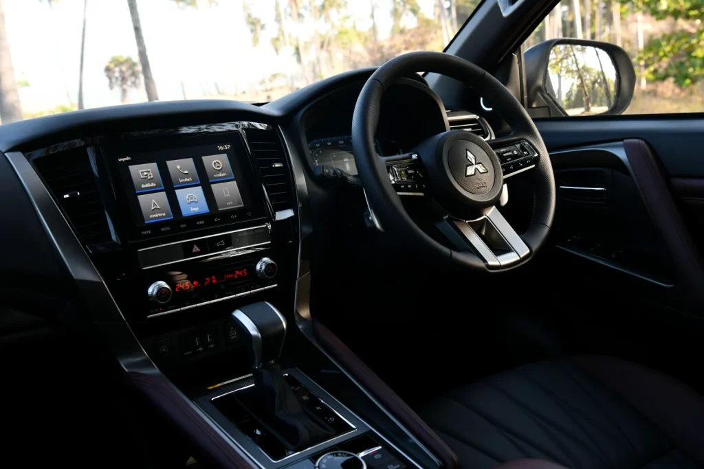 ด้านภายในห้องโดยสารถือว่ามีการปรับเปลี่ยนไปอย่างชัดเจน ในส่วนของชุดพวงมาลัยใหม่ ที่ยกมาจาก Mitsubishi Triton ช่วยให้ตัวรถดูแข็งแกร่ง ดุดันมากยิ่งขึ้นจากภายใน และที่สำคัญคือมันมีลูกเล่นในส่วนของแป้น Paddle Shift มาให้ด้วย ขณะที่ชุดจอมาตรวัด ก็มีการปรับไปใช้จอ Full Digital ขนาด 8 นิ้ว ซึ่งยกมาจาก Xpander HEV แต่มีการปรับอินเตอร์เฟซภายในใหม่เล็กน้อย ตามความเหมาะสม