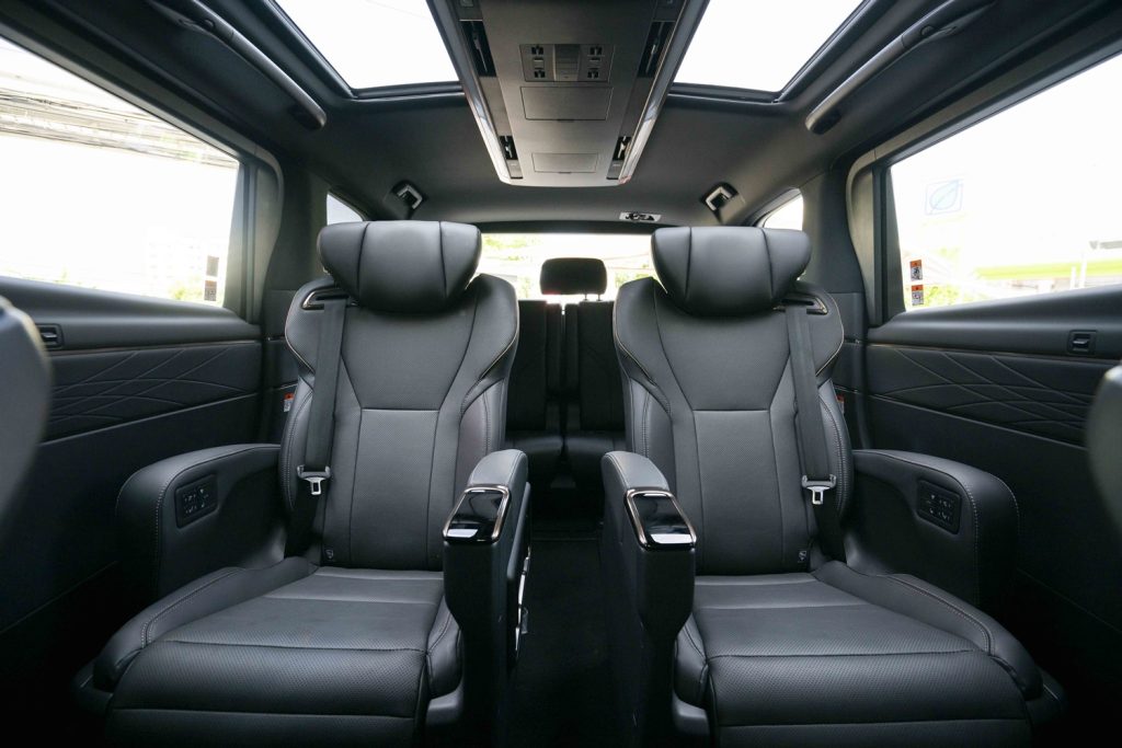 หน้าจอควบคุมระบบสัมผัส, สำหรับผู้โดยสารตอนหลัง เบาะนั่งแถวที่ 2 ควบคุมด้วยระบบไฟฟ้า เบาะรองน่อง, เบาะนั่งแถวที่ 3 แยกพับอิสระ 50 : 50 แบบแขวน ที่เก็บสัมภาระใต้เบาะนั่งแถวที่ 3, ม่านบังแดดปรับไฟฟ้า พร้อมแผงควบคุม Super-Long Overhead Console ช่วยให้ผู้โดยสารทุกที่นั่งสามารถเปิดกระจกหน้าต่างฝั่งตรงข้ามได้อย่างสะดวก, ระบบปรับอากาศอัตโนมัติ 4 โซน พร้อมระบบปรับสมดุลอากาศในห้องโดยสาร NanoeX, ประตูสไลด์ไฟฟ้า ซ้าย-ขวา พร้อมสวิตซ์ควบคุมการเลื่อนเปิด-ปิด One Touch Seesaw, ฝาท้าย เปิด-ปิด ด้วยระบบไฟฟ้า