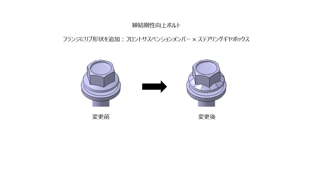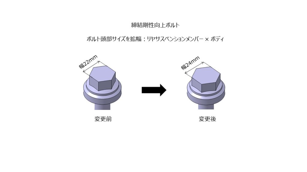 ในล็อตใหม่รุ่น MY2024 มีการปรับหลักๆเพียงสามส่วนเริ่มที่ส่วนแรกตัวน็อตยึดหกเหลี่ยมในส่วนของช่วงล่างหน้าและชุดเกียร์ภายใต้ชิ้นส่วนแชสซีส์ครอบไว้นั้นปรับให้มีการขันที่แน่นขึ้น ส่วนช่วงล่างหลังมีการปรับขนาดน็อตยึดหกเหลี่ยมให้ใหญ่ชึ้นเป็น 24 มม. จากเดิม 22 มม. เพื่อเสถียรภาพในการควบคุมการขับขี่ความคมในการเข้าโค้ง การวิ่งในทางตรงและการสนองต่อการควบคุมพวงมาลัยให้ดีขึ้นและรู้สึกเป็นหนึ่งเดียวกับรถในการขับขี่
