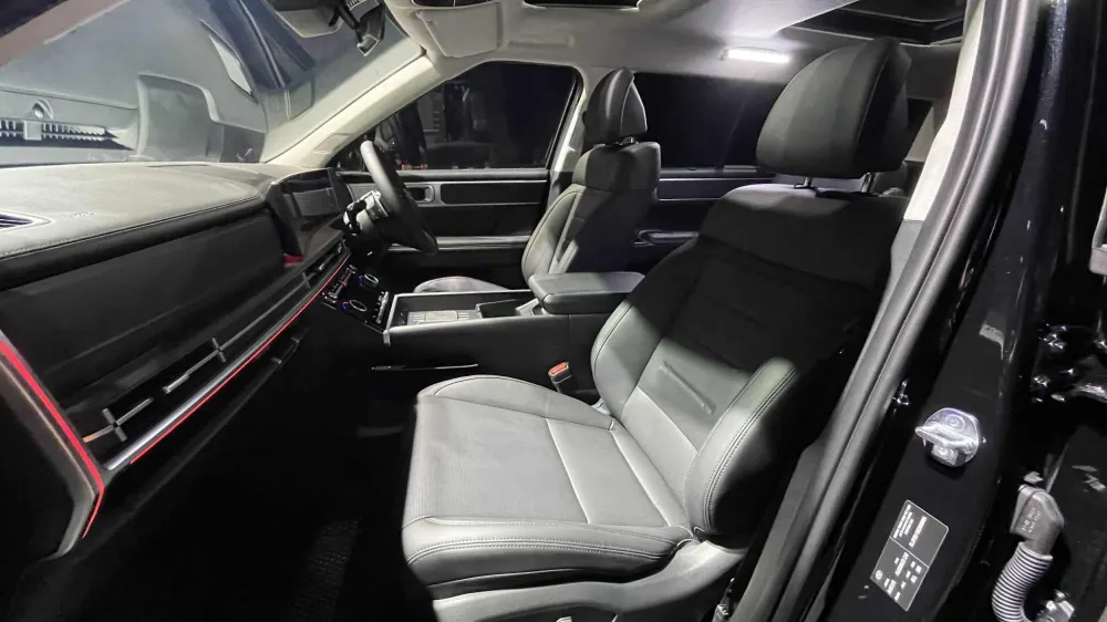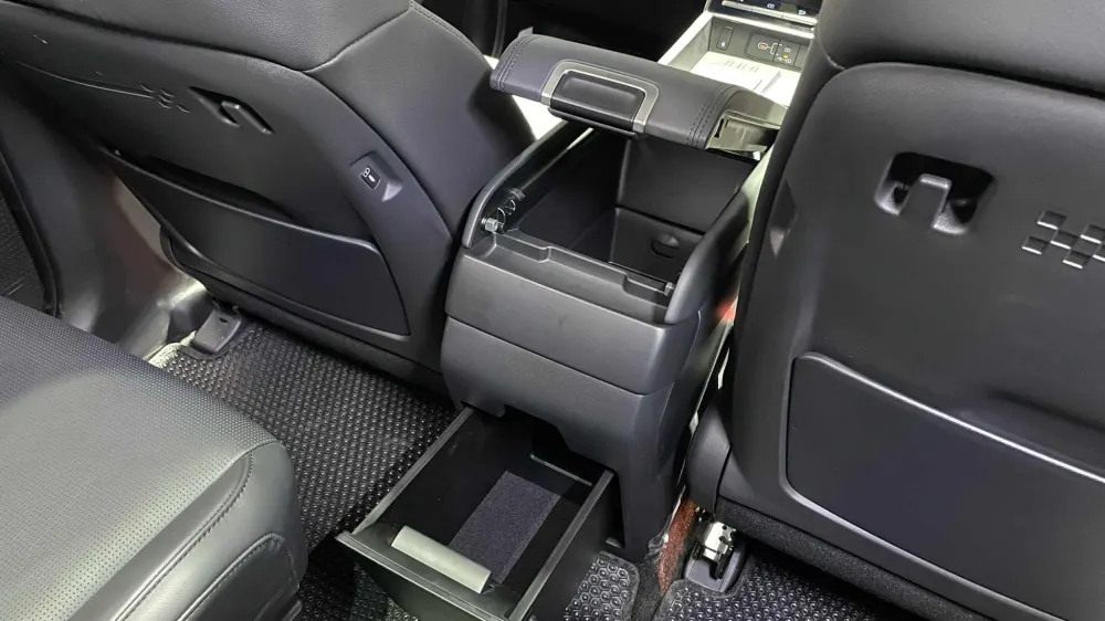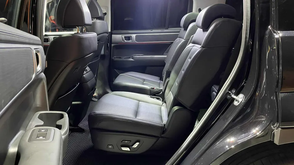 กล่องคอนโซลลกลางพร้อมฝาเปิดแบบ 2 ทิศทาง เพื่อให้ผู้โดยสารด้านหน้าและด้านหลังสามารถเข้าถึงพื้นที่จัดเก็บสัมภาระตรงกลางได้แบบ Bilateral Multi-Console แจ้งเตือนผู้โดยสารด้านหลังก่อนออกจากรถ โดยที่เบาะตรงกลางเป็นแบบ Captain Seat พร้อมระบบปรับตำแหน่งด้วยไฟฟ้า มีพื้นที่ตรงกลางสำหรับการเดินเข้า-ออก จากเบาะนั่งแถว 3