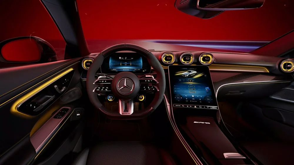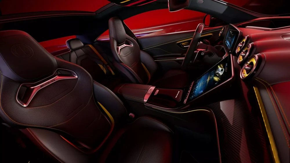 ภายในห้องโดยสารยังมีการตกแต่งด้วยเบาะนั่ง AMG Performance ที่หุ้มด้วยหนังแนปป้าตัดอัลคันทาร่า และเดินตะเข็บด้ายสีเหลือง ช่วยเสริมทั้งภาพลักษณ์ซิ่งและทำให้ผู้นั่งมีความกระชับ ไม่หลุดหรือไหลไปกับแรงเหวี่ยงขณะสาดโค้ง เสริมความหล่อด้วยชิ้นงานคาร์บอนเข้าไป พร้อมเติมสีเหลืองเข้าไปอีกหน่อยที่พรมรองเท้า และไฟเรืองแสงตามจุดต่างๆภายในห้องโดยสาร ไม่เว้นแม้แต่บนแผ่นกันกระแทกที่กาบประตู