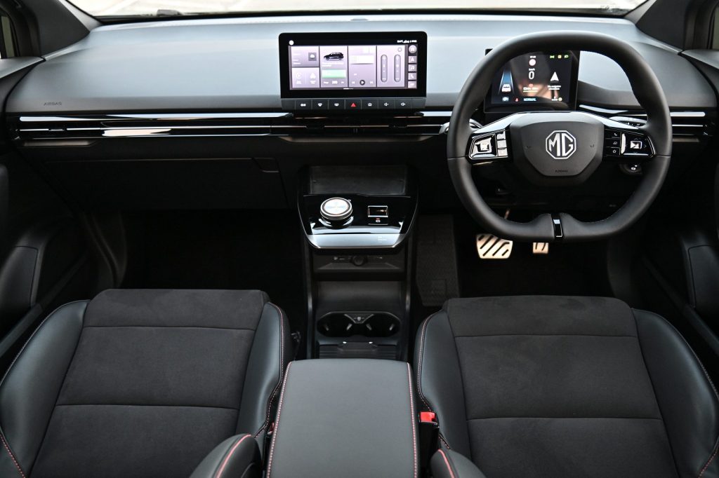 โดยหากไม่นับหน้าจอที่ถูกเปลี่ยนไปใช้แบบเดียวกับร่างขับเคลื่อนล้อหลัง นอกนั้นก็จะมีในส่วนของพวงมาลัยที่เป็นดีไซน์เดิม 2 ก้าน แบบเดียวกับ MG4 รุ่นปีปัจจุบัน แต่เปลี่ยนสีหนังหุ้มกรอบพวงมาลัย กับปุ่มแตรตรงกลางให้เป็นสีขาว, ปรับดีไซน์ปุ่มลูกเล่นจำพวก ระบบไล่ฝ้า ระบบไฟฉุกเฉินและอื่นๆตรงกลางคอนโซลใหม่ ให้เข้ากับหน้าตาคอนโซล
