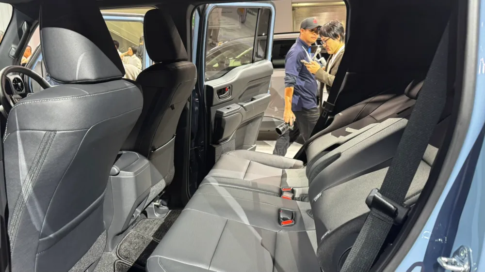 นอกนั้นในด้านเบาะนั่ง เบื้องต้นจะเป็นเบาะหุ้มหนัง ออกแบบด้วยดีไซน์เรียบง่าย เน้นพนักหลังที่ค่อนข้างแบนโดยเฉพาะเบาะคู่หน้า เพื่อเพิ่มพื้นที่สำหรับผู้โดยสารตอนหลังให้มากที่สุดในระยะฐานล้อที่มีค่อนข้างจำกัด และโทนสีภายในห้องโดยสารจะเป็นสีดำทั้งหมด เพื่อลดโอกาสที่ผู้ใช้จะเห็นรอยด่างต่างๆในตอนเอารถไปเข้าป่าฝ่าดง