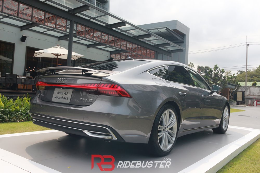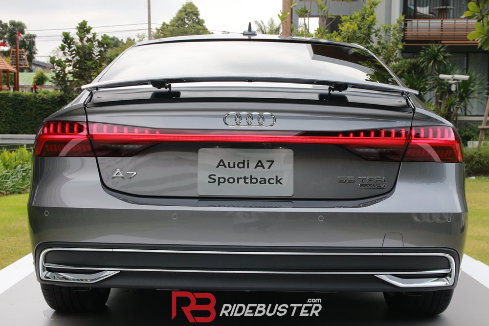 สำหรับรถยนต์   Audi  A7 Sportback  เป็นรถซีดานกลางทรงท้ายลาดให้ เน้นความโอ่อ่า และภูมิฐานในการขับขี่ การออกแบบด้านหน้าที่ดูสปอร์ตดุดันลงตัวน่าใช้งาน ได้แนวทางการออกแบบของอาวดี้ใหม่ ทางด้านข้างติดตั้งล้ออัลลอยขนาด 20 นิ้ว ให้รายละเอียดการออกแบบสไตล์สปอร์ตตลอดคัน รวมถึงเส้นลหังคาท้ายลาด จรดบั้นท้ายรถใหม่ที่ดูลงตัวน่าใช้งานและทันสมัย ด้วยไฟท้าย   LED   ทรงยาว พร้อมประตูท้ายไฟฟ้า  ป้องกันการหนีบระหว่างการทำงานอีกด้วย