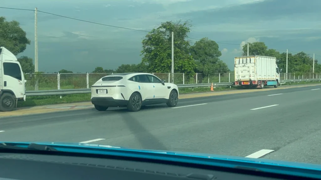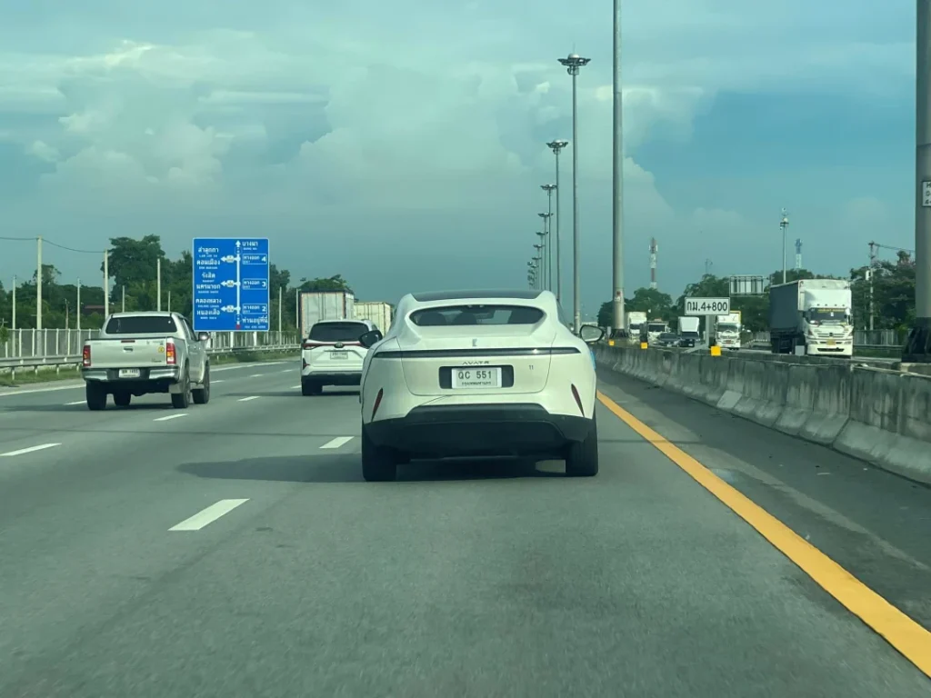 สำหรับภาพที่ถูกจับถ่ายเอาไว้ได้โดยทีมงานของทาง Ridebuster และทุกท่านกำลังเห็นกันอยู่ในขณะนี้ คือภาพของตัวรถ Avatr 11 ที่กำลังถูกนำมาวิ่งทดสอบบนทางด่วนของประเทศไทยเรานี่เอง ซึ่งจุดน่าสนใจของมันก็คือการที่ตัวรถคันนี้ แทบไม่มีการติดสติ๊กเกอร์พรางใดๆ แถมยังมีการติดป้ายทะเบียน “QC” ซึ่งแตกต่างจาก “TC” ที่คนส่วนใหญ่มักเคยเห็นกัน