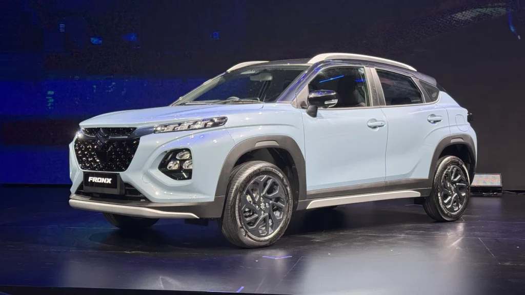 แต่อาจจะด้วยความที่ Fronx ได้ถูกสร้างขึ้นบนแพลตฟอร์มและงานออกแบบที่ใหม่กว่า ทำให้ด้านหน้าของมันมีการแบ่งตำแหน่งไฟหน้า ไฟ LED และ ไฟตัดหมอก ให้มีความเป็นสัดส่วนชัดเจนตามยุคสมัยใหม่มากกว่า และด้วยความพยายามในการใช้เส้นสายตัวรถแบบเว้าโค้ง จึงทำให้รถดูมีมิติชัดลึกตามจุดต่างๆมากกว่า ไม่ว่าจะเป็นที่กันชนหน้า หรือซุ้มล้อทั้ง 4 แม้กระทั่งหลังคายังดูมีความลาดเอียงมากกว่า เพราะตัวรถถูกออกแบบให้มีความเป็นอเนกประสงค์หลังคาคูเป้โดยกำเนิดนั่นเอง