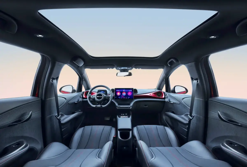 ภายในพิเศษด้วยการตกแต่งโทนสีดำ/สีแดงตั้งแต่วัสดุคาร์บอนในชุดแผงคอนโซลหน้าที่ช่องแอร์ซ้าย-ขวา เบาะนั่งทรงสปอร์ตหุ้มหนังสีดำเดินด้ายสีแดง พนักพิงศีรษะปักโลโก้พิเศษ 50 สีแดง พร้อมฟังก์ชันใหม่ทั้งระบบโต้ตอบด้วยเสียงอัจฉริยะ และการสตาร์ทรถอัจฉริยะ มาพร้อมพลังอีวีที่เชื่อถือด้วยมอเตอร์ไฟฟ้าเดี่ยวแบบ permanent magnet synchronous motor มีให้เลือกถึงสองแบบตั้งแต่ความจุแบตเป็น 44.9 kWh แรงสุด 95 แรงม้า แรงบิด 180 นิวตันเมตร วิ่งไกลสุด 401 กิโลเมตรต่อการชาร์จหนึ่งครั้งตามมาตรฐาน CLTC อัตราเร่ง 0-50 กิโลเมตรต่อชั่วโมง ทำได้ 3.9 วินาที ความเร็วสูงสุด 150 กิโลเมตรต่อชั่วโมง การชาร์จผ่านไฟ AC รองรับการชาร์จสูงสุด 6.6 kW 0-100% ภายใน 7.5 ชั่วโมง ส่วนการชาร์จผ่านไฟ DC รองรับการชาร์จสูงสุด 60 kW ในรูปแบบ Fast Charging ชาร์จจาก 30-80% ใช้เวลาเพียง 30 นาที
