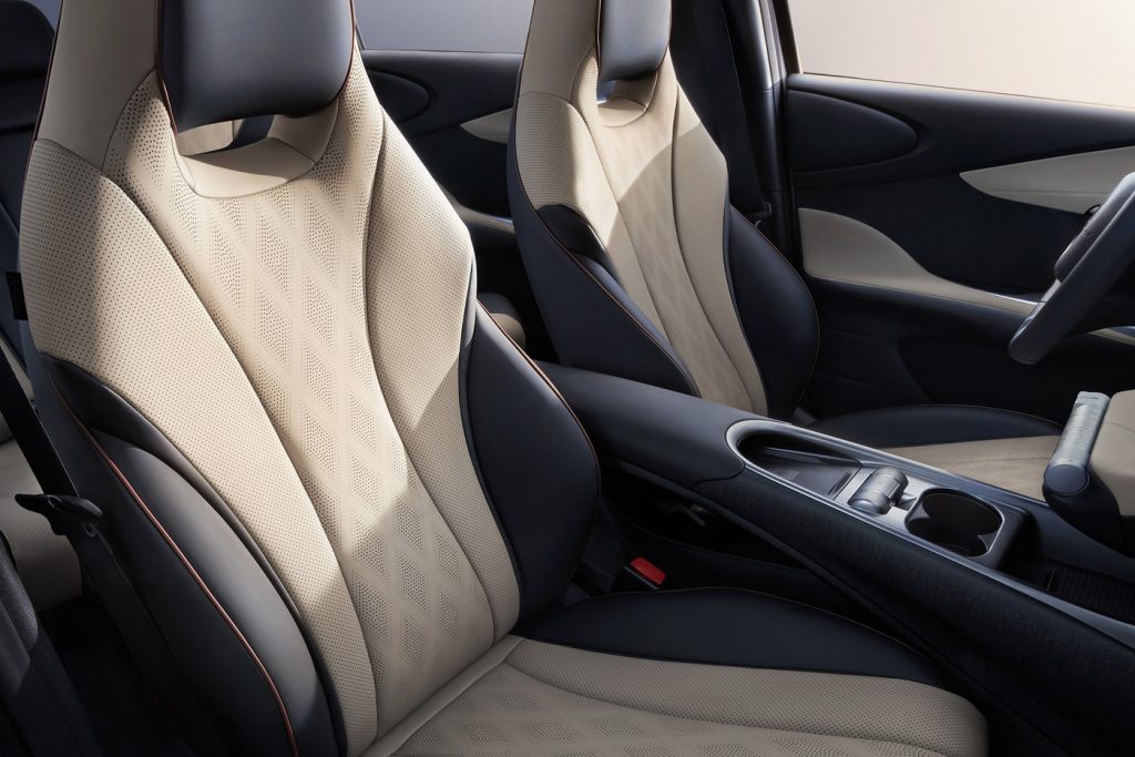เบาะนั่งคนขับปรับไฟฟ้า 6 ทิศทาง และคนนั่งปรับธรรมดาแบบสี่ทิศทาง เบาะหลังสามารถพับได้ในอัตราส่วน 40:60 เพวงมาลัยมัลติฟังก์ชันแบบ 3 ก้าน มือจับเปิดประตูออกแบบคล้ายครีบของโลมา จอในส่วนของอุปกรณ์ Infotainment ใหญ่เต็มตาด้วยขนาด 12.8 นิ้ว ปรับหมุนได้แบบแนวนอนและแนวตั้ง และมาตรวัดดิจิทัล 5 นิ้ว